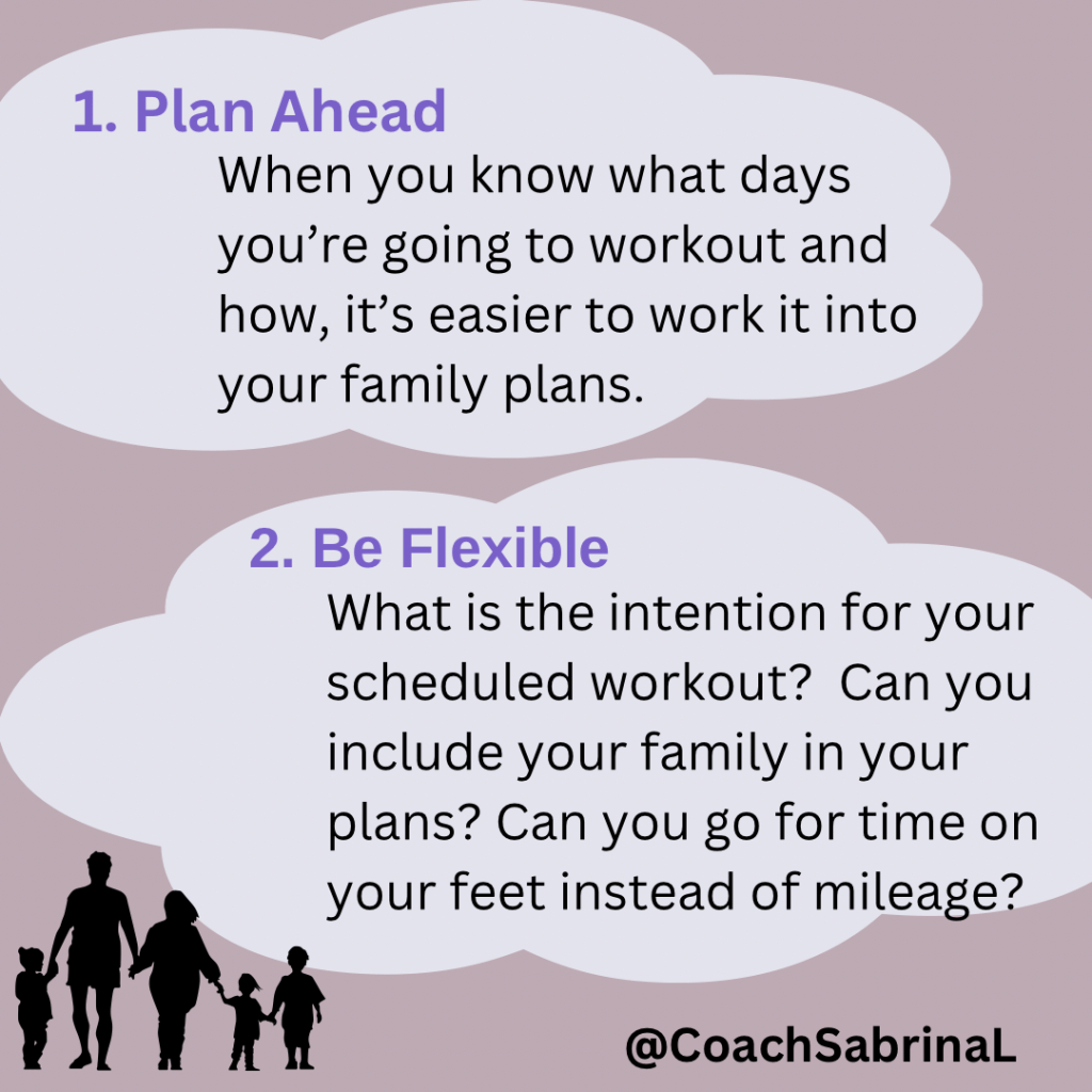 Better Answer: 1. Plan Ahead – When you know what days you’re going to workout and how, it’s easier to work it into your family plans.